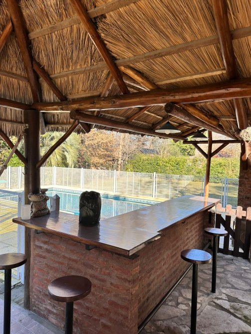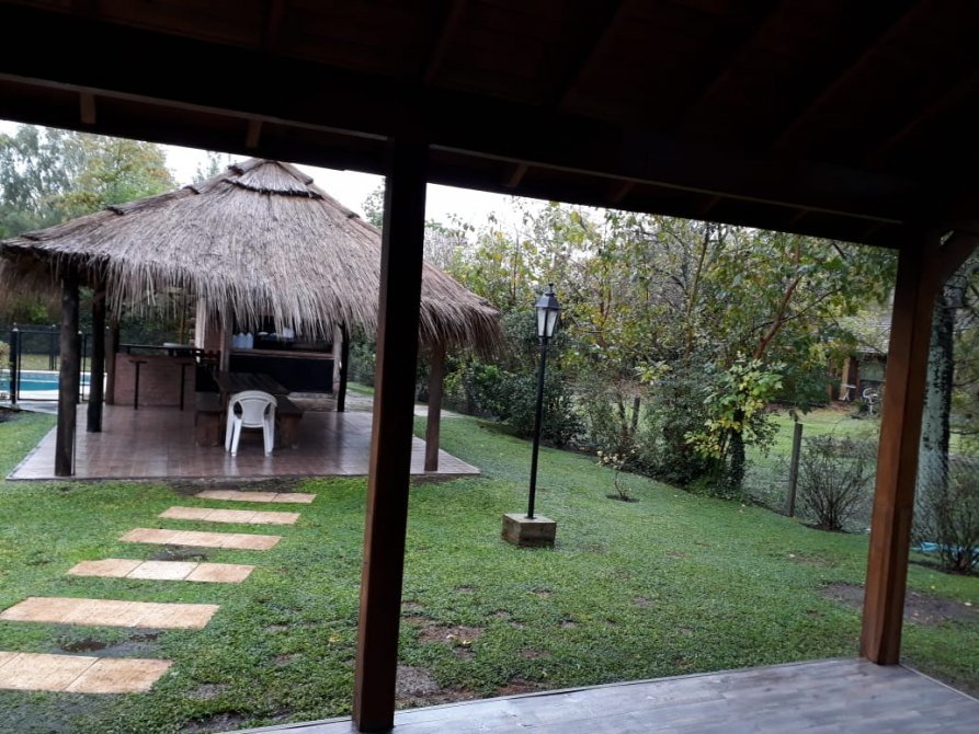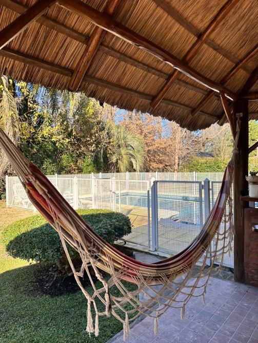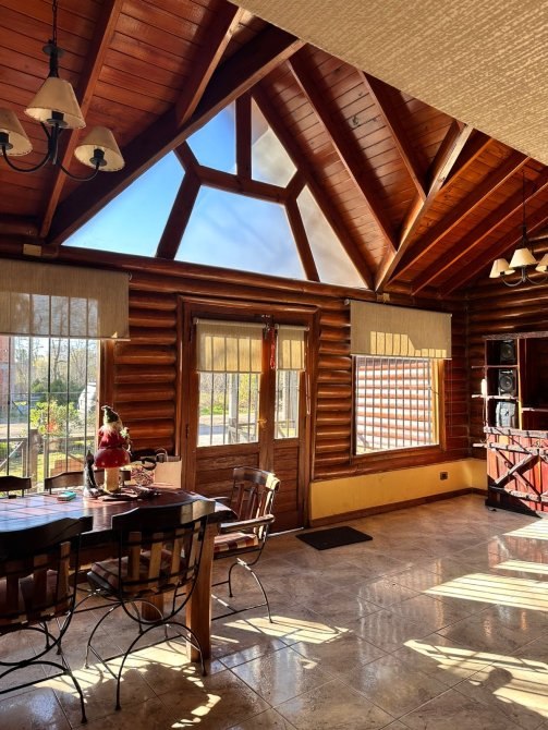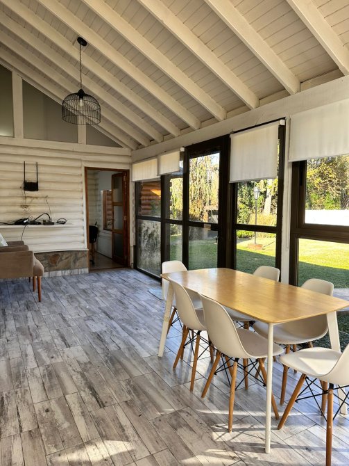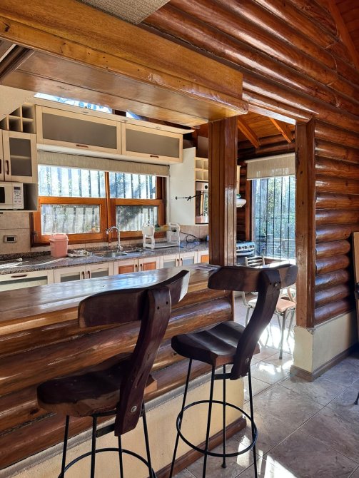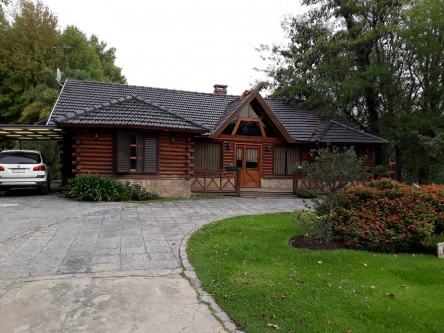 EXELENTE CHALET ESTILO CABAÑA DE TRES DORMITORIOS UNO DE ELLOS EN SUITE CON VESTIDOR, AMPLIO Y LUMINOSO LIVING COMEDOR, COCINA, JARDIN DE INVIERNO, ESTUDIO, PLAYROOM EN ENTRE PISO, LAVADERO, PARQUE QUINCHO CON PARRILLA Y BAÑO COMPLETO TODO INTEGRADO A LA PILETA DE NATACION,