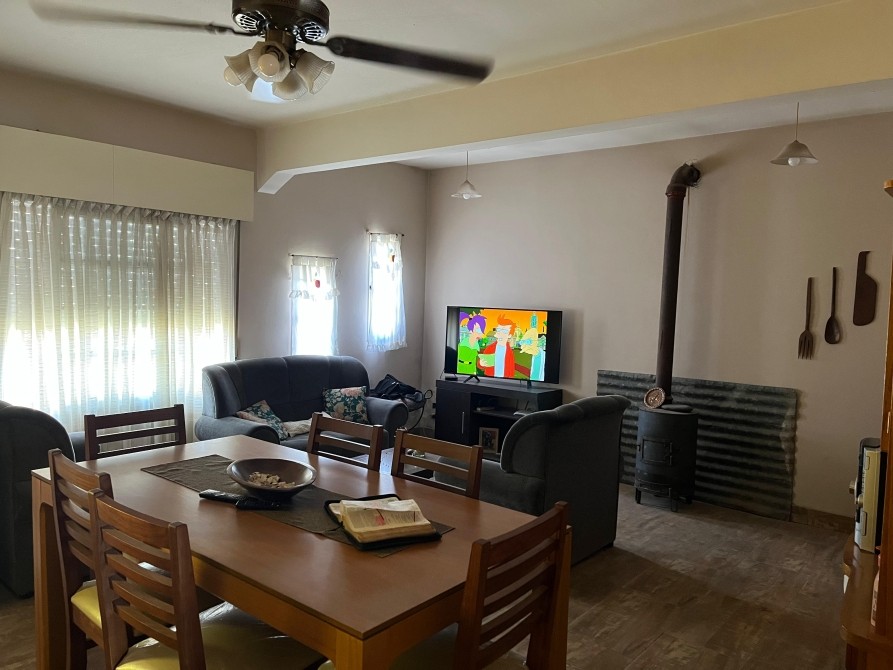 Amplia casa compuesta de dos dormitorios, living-comedor, cocina, baño principal y baño de servicio, galeria, cochera y amplio parque.