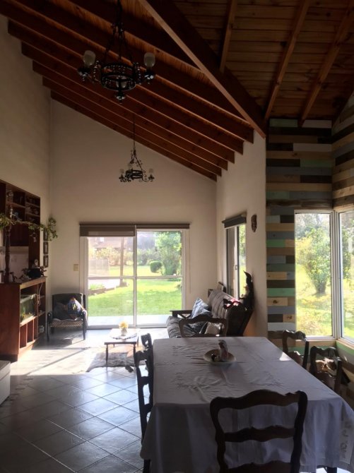 CHALET: 3 DORMITORIOS, ( UNO EN SUITE), LIVING-COMEDOR CON HOGAR A LEÑA, COCINA, BAÑO, LAVADERO, QUINCHO CON BAÑO, PILETA DE NATACION CON SOLARIUM, AMPLIO PARQUE ARBOLADO, COCHERA. CASA EQUIPADA CON AIRES ACONDICIONADO Y CALEFACCION POR TIRO BALANCEADO A GAS NATURAL.