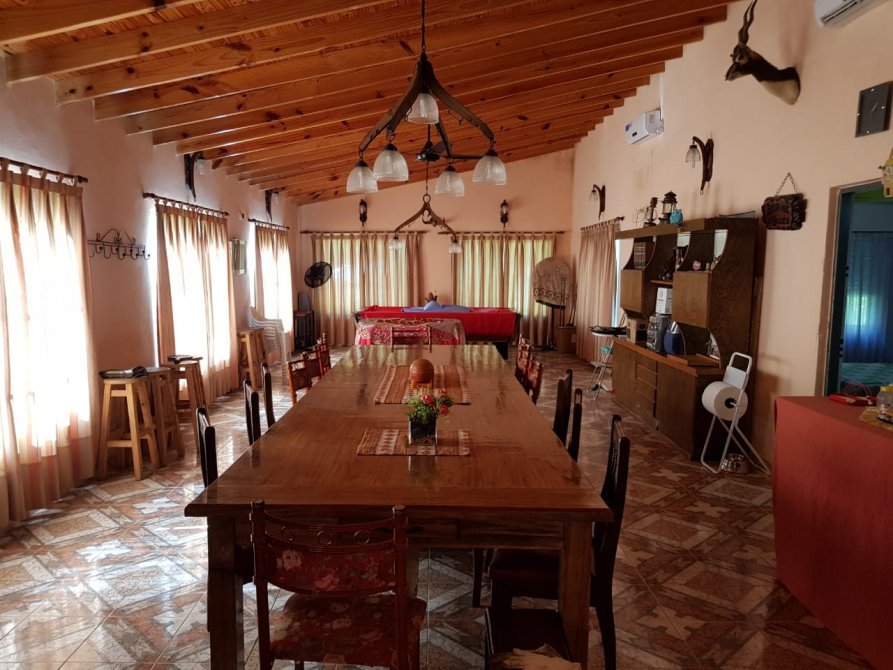 EXELENTE QUINTA DE UNA HECTAREA CON AÑOSA ARBOLEDA, TOTALMENTE PARQUIZADA CON PILETA DE NATACION DE MATERIAL EQUIPADA. CALLES DE ACCESO EN BUEN ESTADO TRANSITABLES AUN EN EPOCAS DE LLUVIA, CASA PRINCIPAL:COMPUESTA DE TRES DORMITOROS, BAÑO, COCINA Y AMPLIO SALON DE 18 X 5 MTS. CON CAPACIDAD PARA SESENTA PERSONAS, COMPLETAMENTE EQUIPADO CON EQUIPOS DE AIRE ACONDICIIONADO FRIO /CALOR EN TODA LA CASA. METROS CUADRADOS CONSTRUIDOS 185 MTS.