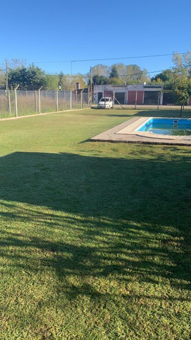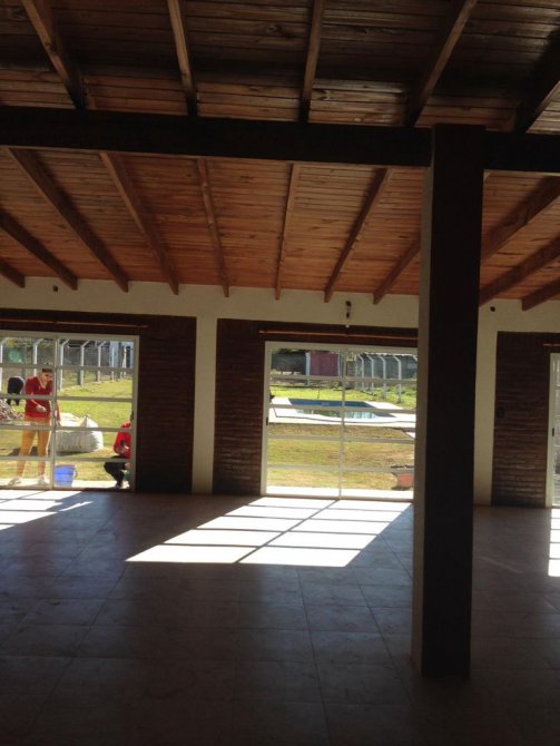 AMPLIO QUINCHO DE 135 METROS CUADRADOS, EQUIPADO CON CON MESADA, BAJO MESADA , ANAFE, SOFA DE 3X 3 METROS CON CAPACIDAD DE SIETE CUERPOS, UN AIRE ACONDICIONADO DE 14000 FRIGORIAS Y OTRO DE 7000 FRIOCALORIAS. BAÑO TOTALMENTE EQUIPADOY UNA HABITACION AMUEBLADA.