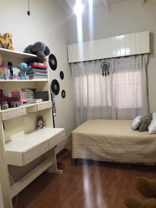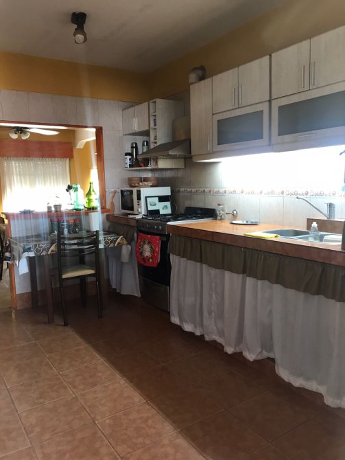 Amplia casa compuesta de dos dormitorios, living-comedor, cocina, baño principal y baño de servicio, galeria, cochera y amplio parque.