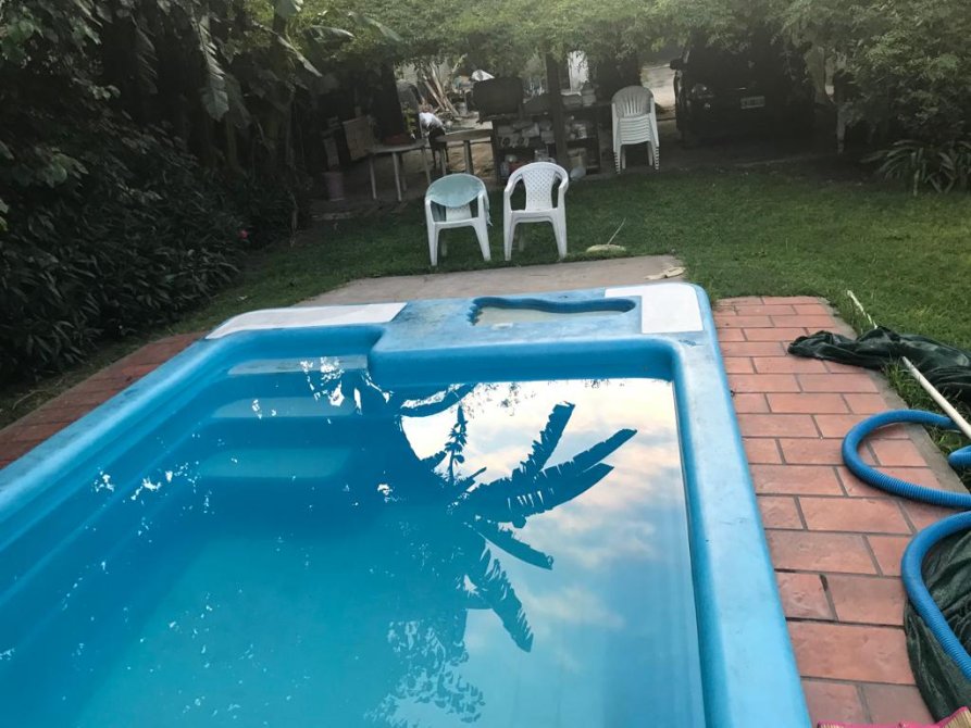 Exelente casa quinta , construida en material con techo de losa y sobre techo de chapa, parquisado y arbolado, completamente perimetrado, con porton electrico. Casa Principal: